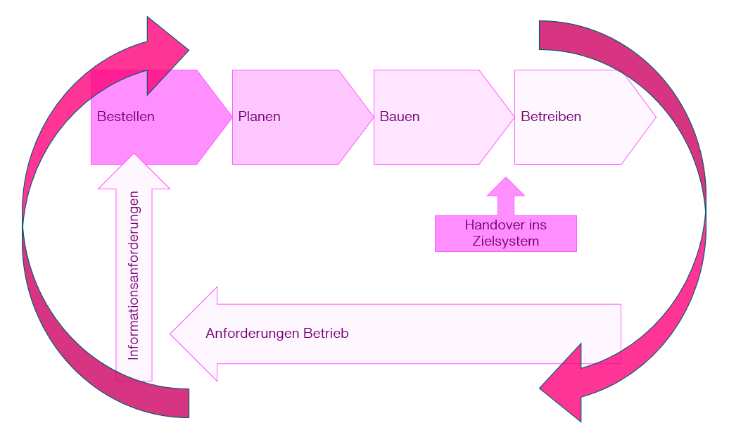 The added value becomes tangible when property management and facility management work seamlessly together. This closes the loop: operational requirements feed directly into new projects, and what is handed over at commissioning is actually needed. During planning, only the information that will be relevant in operations is communicated, requested, and quality-assured — eliminating surprises at project completion.